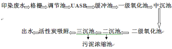 法、活性炭法和電凝聚法等。印染廢水的工藝流程如下圖: