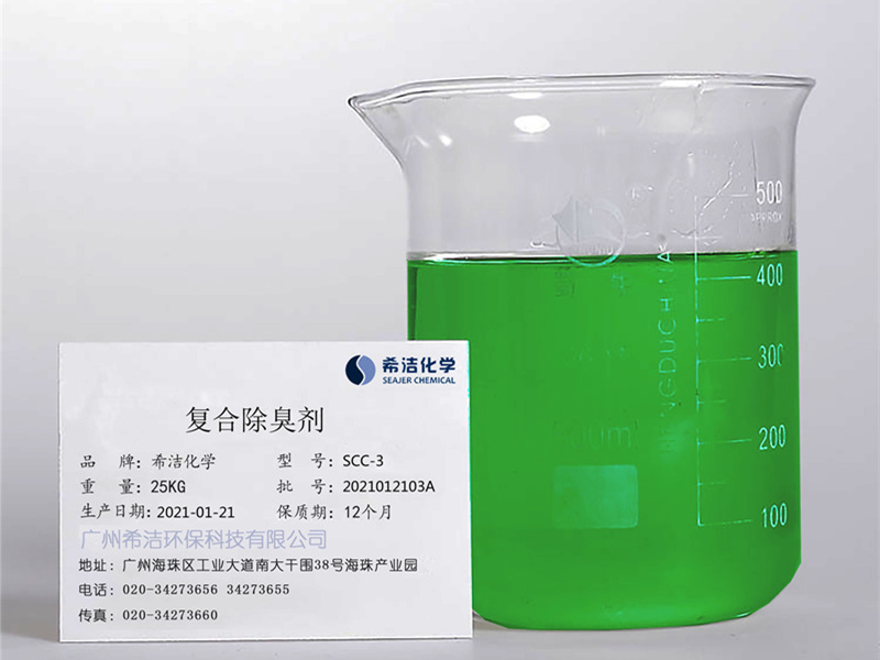 希潔環(huán)保研發(fā)的復(fù)合型除臭劑,能對(duì)有害、臭味分子進(jìn)行聚合、取代、置換、吸附等反應(yīng),從而有效去除硫化氫、甲烷、甲硫醇、氨氣及其他揮發(fā)性有機(jī)物(VOC)等惡臭氣體。